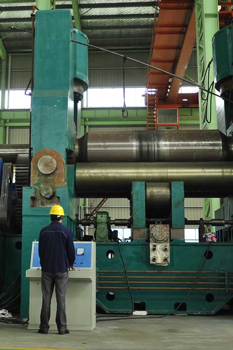 水平下調(diào)式三輥卷板機(jī)可用于將一定厚度的金屬板材卷制成筒狀、弧形或一定錐度的工件。該設(shè)備可用于大型厚壁承壓設(shè)備、化工壓力容器等產(chǎn)品的筒體卷制和焊后校圓,